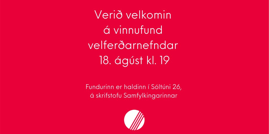 Við hvetjum ykkur til að mæta á næsta vinnufund velferðarnefndarinnar næsta þriðjudag 18. ágúst kl. 19 í nýju húsnæði flokksins í Sóltúni 26, fyrstu hæð. Gengið er inn norðanmegin.
