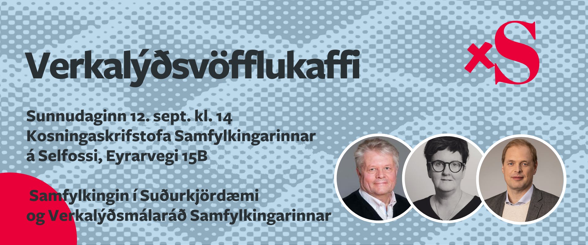 Við ætlum að ræða málefni vinnandi fólks á kosningaskrifstofu Samfylkingarinnar á Selfossi, Eyrarvegi 15b, sunnudaginn 12. sept. kl. 14:00.