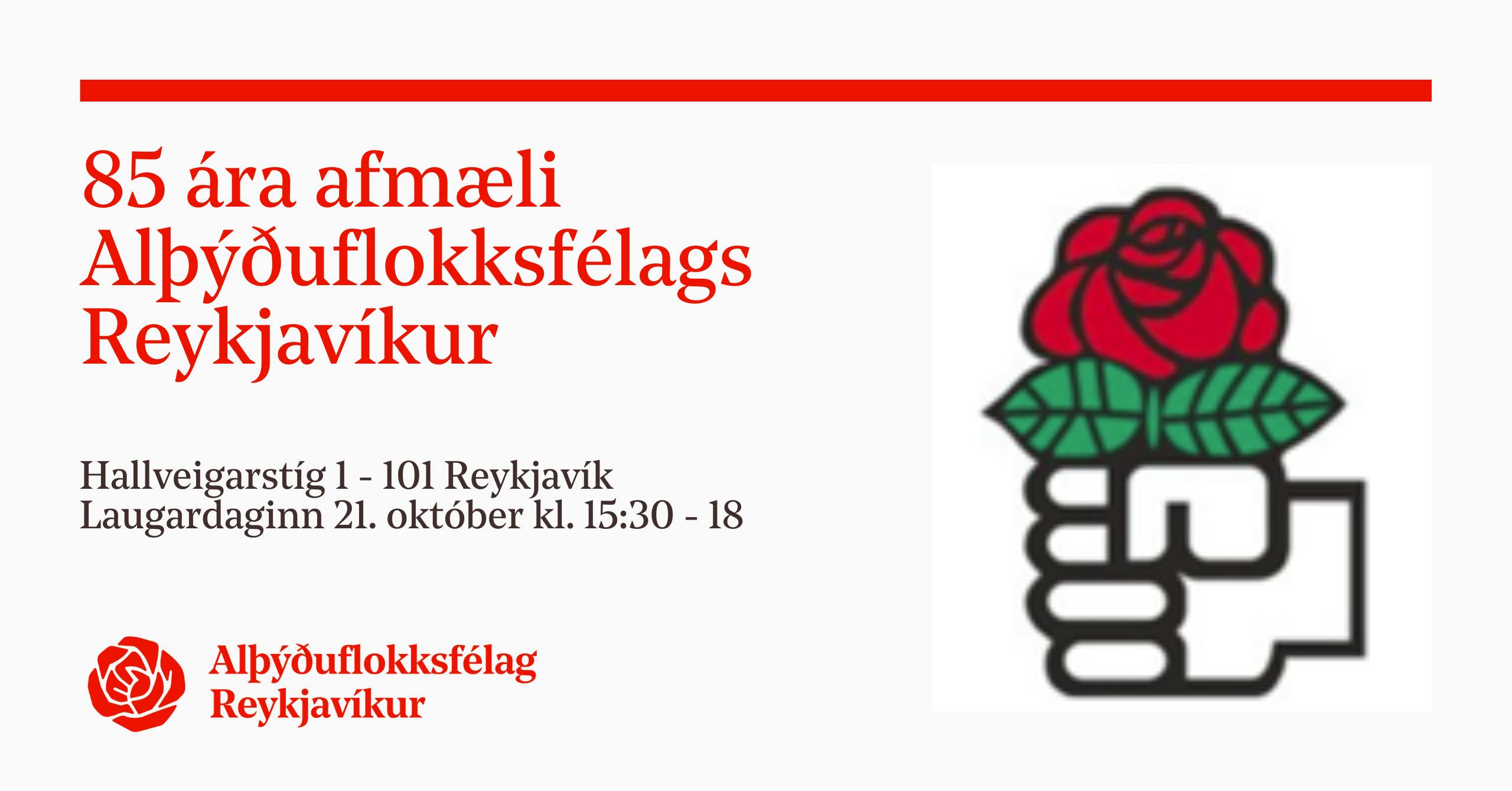 Alþýðuflokksfélag Reykjavíkur fagnar 85 ára afmæli þann 21. október, húsið opnar kl. 15:30 og dagskrá hefst kl. 16:00.